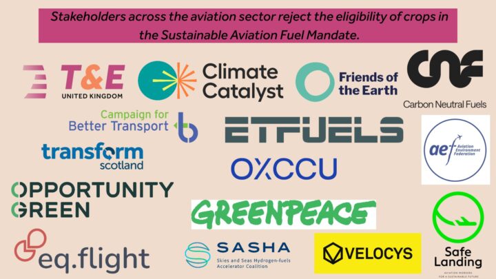 Through an initiative spearheaded by T&E UK, AEF has signed a letter, alongside other aviation campaign groups, calling for crop-based fuels to remain excluded from the UK’s Sustainable Aviation Fuel (SAF) Mandate. Allowing these fuels in would undermine the mandate’s sustainability goals.